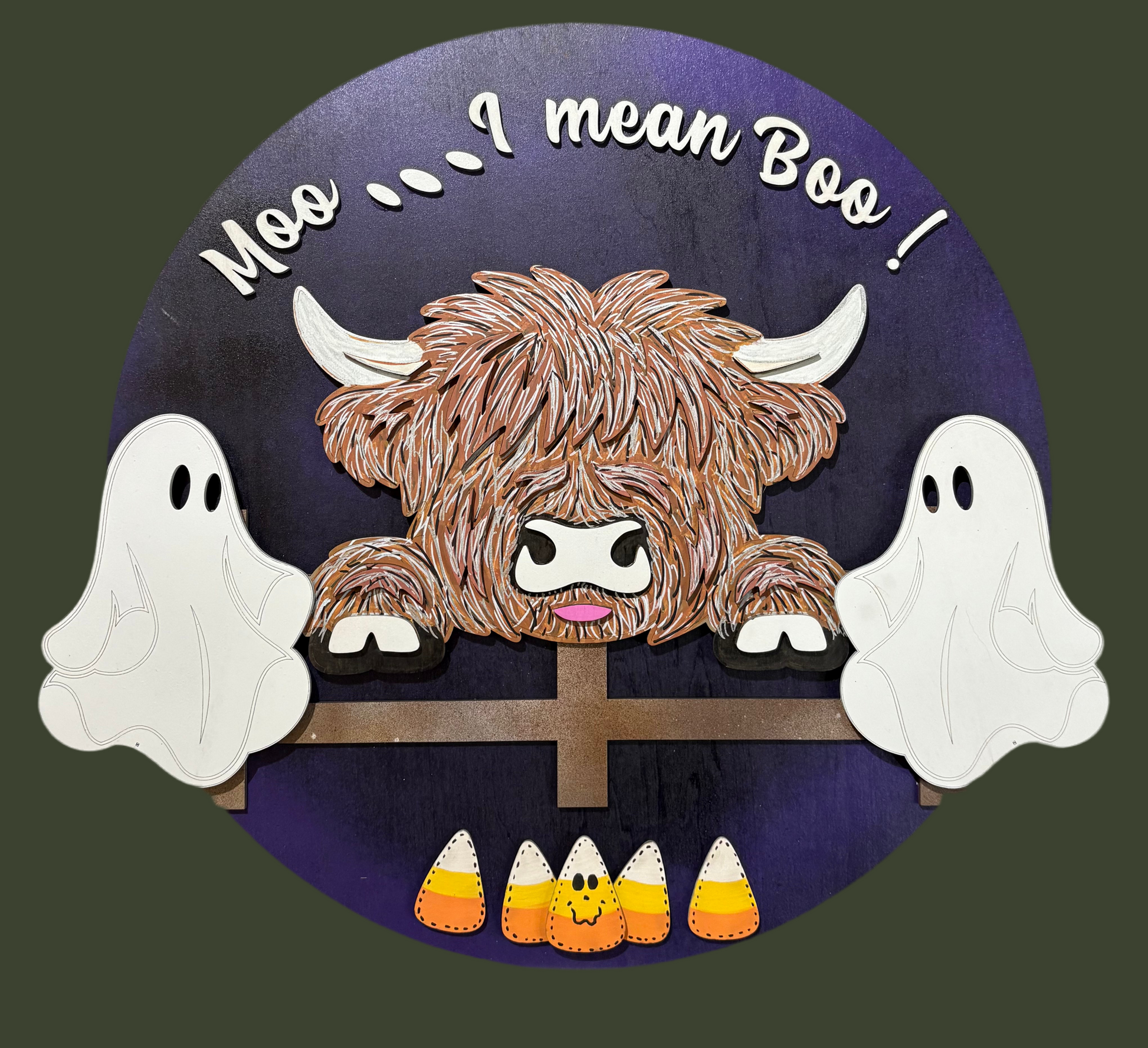 Unique Highland cow + Halloween mashup, layered design, hand-painted.